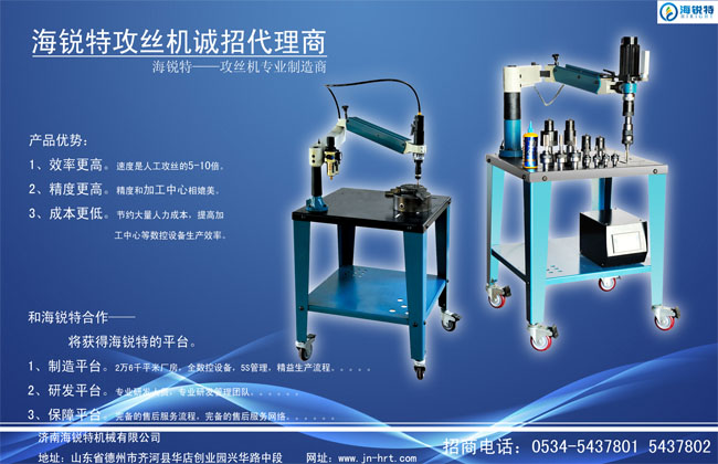 海銳特攻絲機(jī),將在全國(guó)范圍內(nèi)招商,海銳特?fù)碛邢冗M(jìn)的攻絲機(jī)制造體系,技術(shù)研發(fā)體系,完備的服務(wù)跟蹤體系。