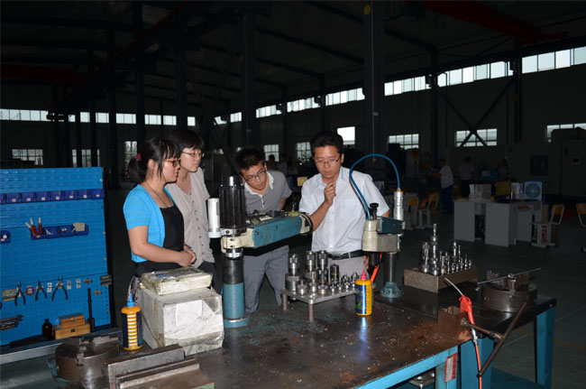 2013年7月11日,公司總經(jīng)理孟慶武先生在百忙之中抽出時(shí)間,親自帶領(lǐng)攻絲機(jī)銷售人員到車間實(shí)地學(xué)習(xí),過程中孟總就氣動(dòng)攻絲機(jī)氣源輸送及補(bǔ)充方面和電動(dòng)攻絲機(jī)電壓和電壓降方面進(jìn)行了詳細(xì)講解,讓新老業(yè)務(wù)員進(jìn)一步加強(qiáng)了理論與實(shí)踐的緊密結(jié)合,加深了對專業(yè)知識的理解,在一定程度上提高了業(yè)務(wù)員為客戶現(xiàn)場解決問題的能力,孟總希望我們的業(yè)務(wù)員不僅要有銷售產(chǎn)品的能力更主要的是要具備為客戶解決困難的能力。